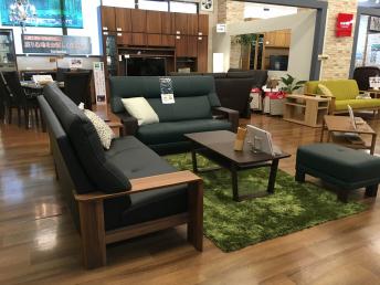 カリモク家具の永年の「座り心地」と「ものづくり」にこだわった製品をお客様へ丁寧にご説明いたします。秋冬のトレンドカラーでもあるネイビー色のソファを新しく展示しました。お部屋のアクセントとしていかがでしょうか。それ以外にもオーダーで商品を作っております。あなたに合った組み合わせをご提案いたします。