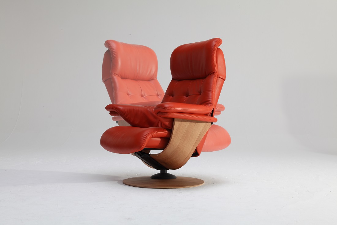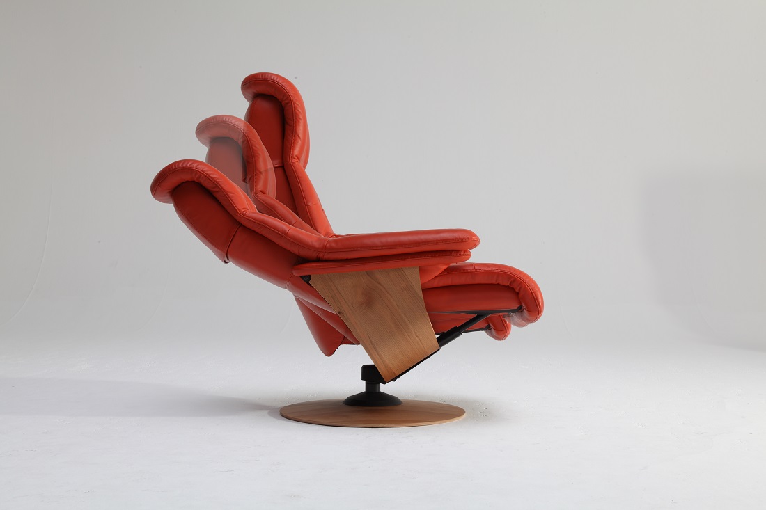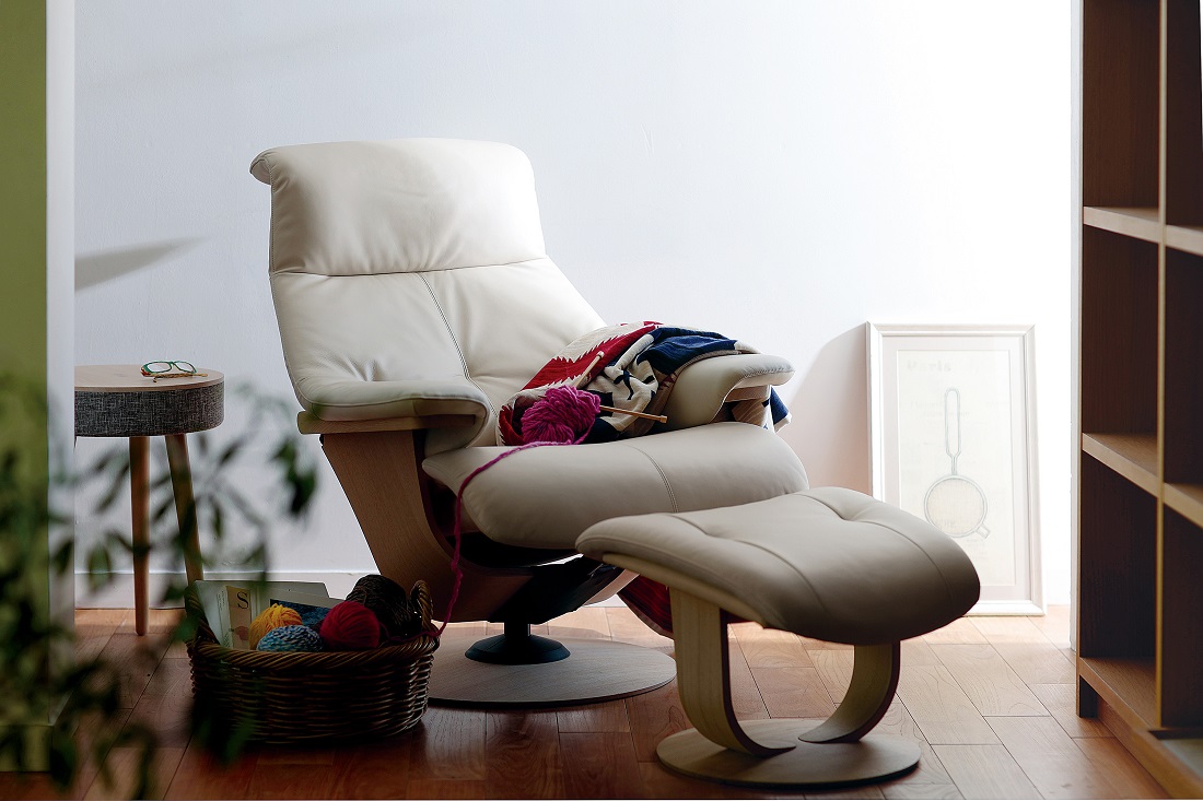THE FIRSTは、エルゴノミクス(人間工学)に脳波・脈波などの解析を加えた、長年に及ぶカリモク家具独自の研究から生まれたプレミアムチェアで、フラッグシップのRU72モデルは2012年グッドデザイン賞を受賞しました。手による操作を排除して、スムーズに作動するメカニズムを持った独自機構のパーソナルなリクライナーです。頭から背中、肘へとつながる一体デザインのシートクッションは、背もたれの傾斜に連動して、ヘッドレストが最適な角度を保ちます。また傾斜時の腰浮きを抑えつつ、体圧を効率よく分散することで、究極の掛け心地を得られます。カリモク家具が70年をかけて培った家具づくりのノウハウを進化させ、特殊な技法で成型した脚部フレームも洗練された印象を与えます。