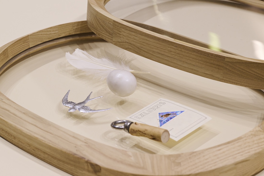 JALグループでは、通常は退役後に国外へ運ばれる航空機を、昨年初めて国内で解体し、資源リサイクルを図るなど、航空機部品のアップサイクルに取り組んでおり、またカリモク家具は、木が森で過ごした年月に相応しい品質、そして森を健全に保つために私たちができることを考え家具づくりに取り組んでおります。両社は、今年6月、インテリアライフスタイル2023にて、退役したJALの「ボーイング777型機」の部品を再利用し、各デザイナーがインテリア用品をデザイン、カリモク家具が製作を手掛けたアップサイクル型のプロダクトを、本展の開催に先駆け、発表・展示しました。
