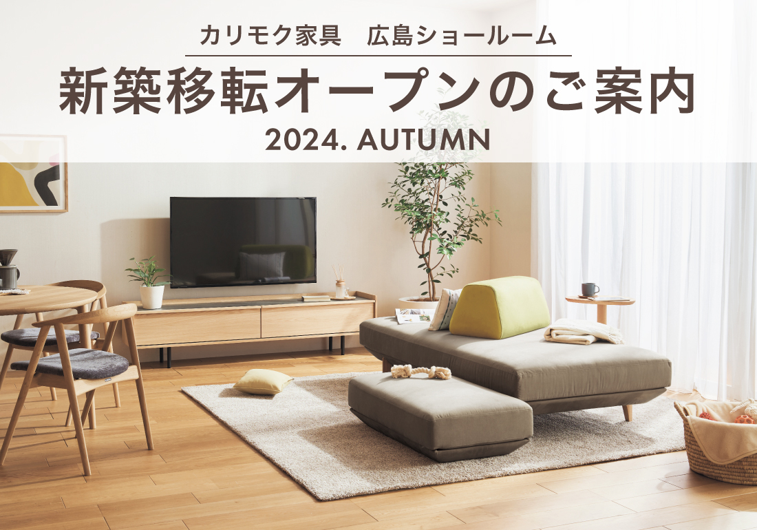 カリモク家具株式会社(取締役社長:加藤正俊 本社:愛知県知多郡東浦町 以下、当社)は、広島県広島市中区吉島東に「カリモク家具 広島ショールーム」を2024年秋頃新築移転オープンいたします。実際に商品に見て・触れていただくことで、掛け心地や使い心地などをお楽しみいただける「体感型ショールーム」をコンセプトに、広島県をはじめとした中国地方にお住まいのみなさまに快適な暮らしづくりをご提案してまいります。