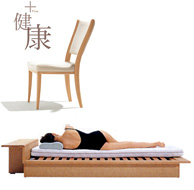 またソファーやダイニングチェアーとともに、快眠に対するニーズも高まっており、個人の身体や好みにあわせて、寝姿勢がチューニングできるベッドを開発しております。一般的なベッドとの違いは、マットレス下にあるスラットベース(板バネ)の、腰部や肩位置の硬さを変えることにより、体型にあわした寝姿勢が調整できることです。ショールームでは、寝姿勢についてのコンサルティングも行っております。健康志向のお客様にお奨めです。