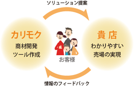 店頭での提案性、品揃え、商品知識力の重要性が益々高くなってきており、お客様の価値観に対応するため、より密接にメーカーと小売が協力体制にあるべきだと考え、3年前より、各地区の有力得意先様に対し、カリモクの魅力が伝わる差別化MDと売り場作りを「カリモクギャラリー」と位置づけ店頭MDの差別化を図り、生産性の高いギャラリー構築のために「マーチャンダイジング」「マネジメント」「セールスプロモーション」という観点からギャラリー計画をご提案してまいりました。