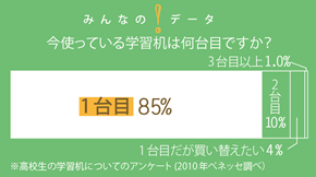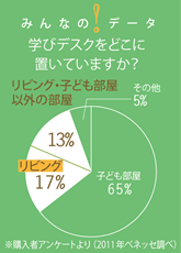 近年、保護者の方の目の届くリビングやダイニングで勉強をするお子さまが増えてきています。ベネッセの学習机購入者に聞いたアンケートでも、約30%のかたが、リビングや家族の共有スペースに学習机を設置していることがわかりました。