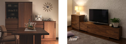 ※プレミアムオーダーは、スタイリッシュで人気のリビングダイニングアイテムを中心に、ウォールナット・メープル・ブラックチェリーの3樹種をオーダー対応。「もっと自然を感じて暮らしたい」というお客様のニーズにフィットし、人気企画となりました。住宅事情に合わせ、床材などとのコーディネートの幅がますます広がります。