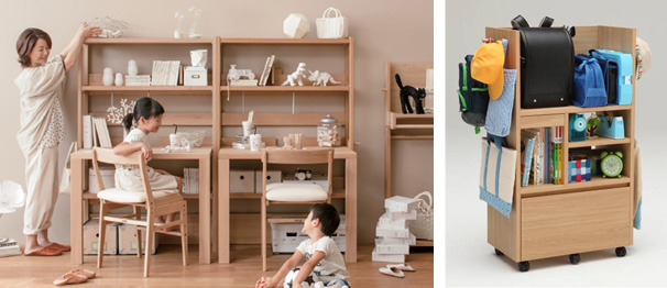 変化する市場を正確に捉えるために、お客様の実情を知るべく「カリモクスマイルプロジェクト」を3年前に発足。学習環境づくり座談会を開催(今年で4回目)して、お客様との情報交換の場を設けています。また、子供部屋の事例投稿や、実際にデスクをご使用頂いているお宅への取材を実施。お客様の声に耳をすませて、集めた声をカタチにしていく活動を続けています。そして、この活動で見えてきたキーワードは「デザイン」「ナチュラル感」「収納」。この3つのキーワードをもとに新しいアイテムを発表いたします。