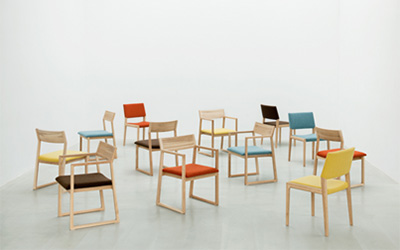 今回出展する家具の材料は国内広葉樹(カエデ、クリ、ナラなど)のサスティナブルな使用が特徴です。