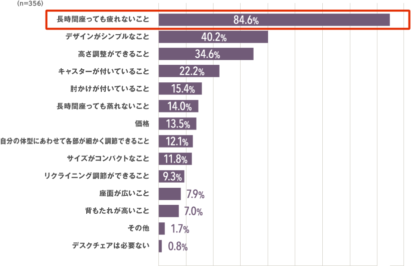 チェアに求めることは、「長時間座っても疲れないこと」が