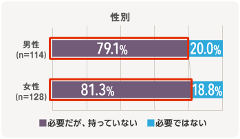 デスクを持っていなくても、男女とも約80%は必要性を感じている。