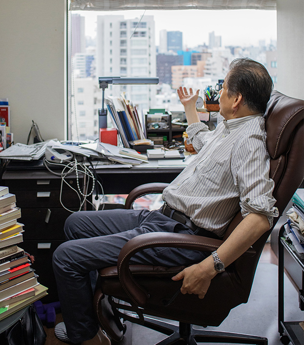 二宮:座って違和感がない点が良かった。またこのデスクチェアは回転が軽くでき、身体の向きが楽に変えられる。椅子を回転させれば、手元の資料や本棚も手が届きますし、スタッフが持ってきた資料もサッと受け取れます。書く時はひとりの作業となる。部屋が広すぎても意識が散漫になります。執筆室はちょっと狭まめにすることで集中力が出しやすくなるので、そうした工夫をしています。デスクの向こう側は窓になっていて、景色が眺めやすくなっています。夜景も綺麗ですよ。疲れた時に風景をみると癒されます。老眼も入ってきており、遠くをみた方が目も楽です。集中して疲れた時に遠方をみて、椅子をリクライニングして休憩して、気分転換してまた執筆に入る。そうなると椅子というのは非常に大事です。椅子が良くないといい仕事ができない。椅子が柔らかかったり硬かったり、違和感があったりするとリラックスできない。またリラックスするためには、背もたれも倒れた方がいいですね。