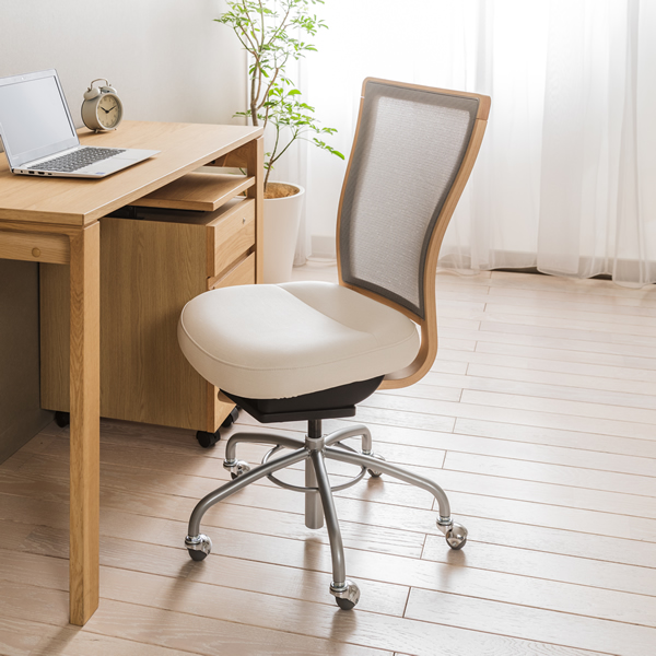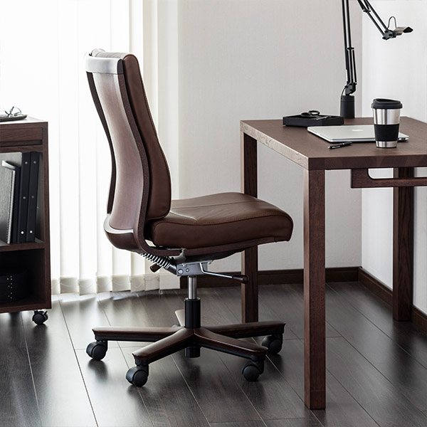 人間工学に基づき設計されたものが多く、腰や背中に沿った形状、体圧分散に優れたシートクッション、荷重移動に追従するロッキング機構など、身体をサポートし長時間の仕事に便利な機能を持っています。アームチェアなら、マウス操作を支えたり、キーボードをタイプしやすく、PCを使う方に適しているとも言えます。
