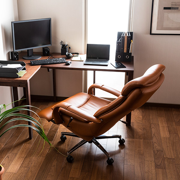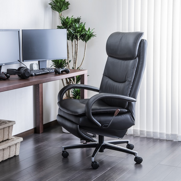 テレワークでは、外部からの刺激を遮断して目の前の業務に集中しなければならない時間もあれば、頭を真っ白にしてリフレッシュしたいときもあるでしょう。オンオフ兼用のオフィスチェアは、ゆったりとくつろげるサイズであることのほか、リクライニングやフットレストなどリラックスできるシステムが加わります。
