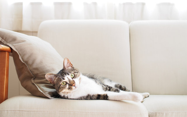 ねこちゃんと暮らす、カリモク家具ユーザーさんに、実際にディナミカ張の家具をお使いになった感想を伺いました!