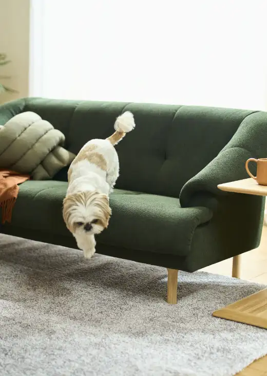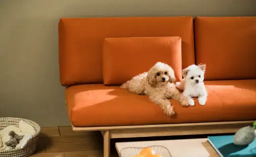 人にとっても犬にとっても、ソファの座り心地は非常に大切です。特にシニア犬になると動き回ることが少なくなるため、座り心地の良いソファを好むようになります。ただ、柔らかすぎるソファは犬がバランスを崩しやすく、関節にも負担がかかる可能性があります。柔らかすぎず、沈み込みすぎない、長時間過ごしても快適なソファを選ぶようにしましょう。