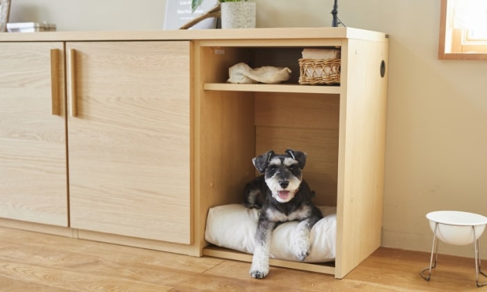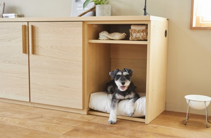 犬の特性として、少し狭めで囲われた空間、音と光が少し遮断された空間が落ち着くと言われています。少し疲れた時、ゆっくりしたい時は専用スペースがあるとくつろげそうですね。
