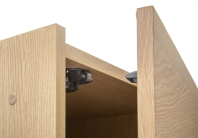 レイフリーの天袋は、収納量を増やすだけでなく、「天井つっぱり機能」での家具の固定ができ、耐震ラッチも付いているので、地震の際のケガ予防におすすめです。