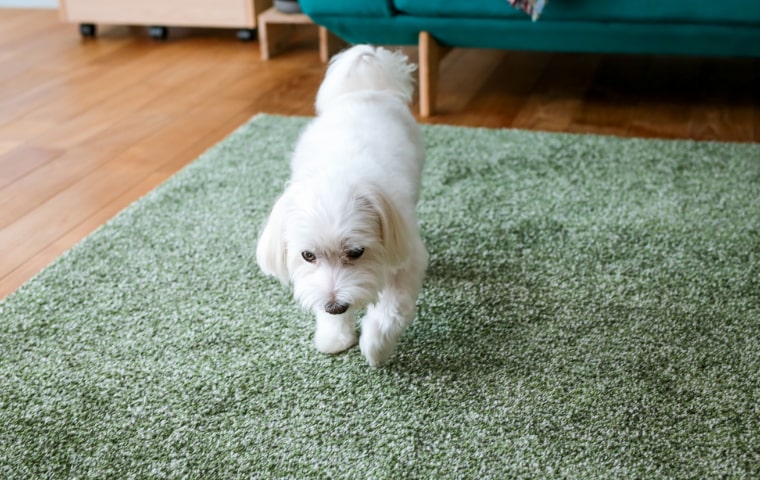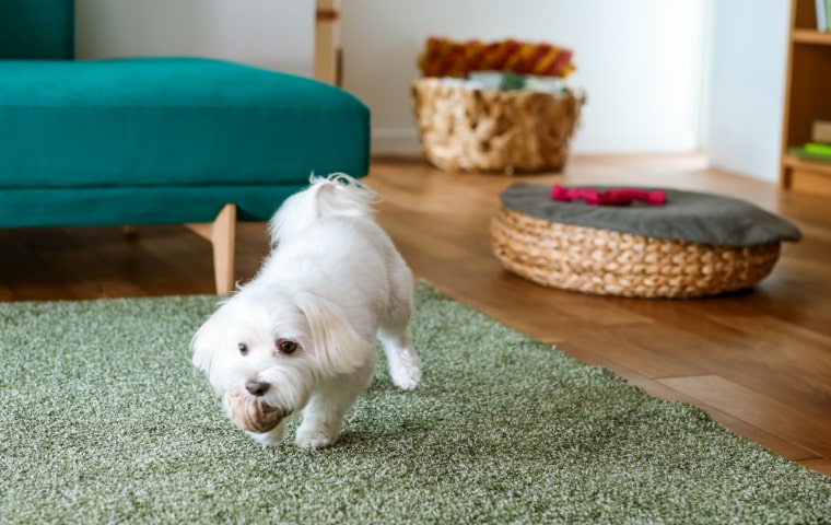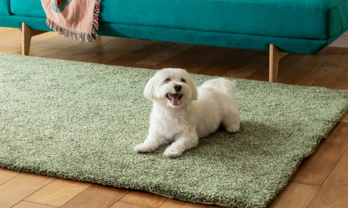 わんちゃんは爪や足裏の毛で、フローリングの床では滑りがち。ラグを敷くことで滑りを防ぎ、足腰のケガの予防につながります。ずっと元気でいて欲しいから、不意なケガは避けたいですよね。