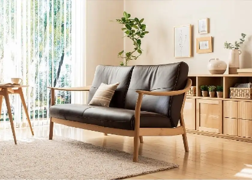 流れるような優美なアームが滑らかにフィット。木目の表情を活かしたアームが美しいソファです。シンプルなデザインなので、天然木の質感がより際立ちます。細身の木肘でシートはゆったり座れる大きな面積を確保。シート内部には体圧分散に優れた素材を使用しているので、お尻から太ももを優しくしっかりサポートします。置きクッションタイプでカバーリングなのでお手入れしやすいです。