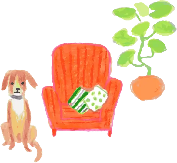 2匹がパピーの頃にひじ掛けを噛んでしまった跡もありますが、2匹が生きている証を残すという意味で、あえて修理せずにそのままにしたいと思っています。実家で、犬がドアをかじった跡がそのまま残されていて、それが素敵だなと思っているので。