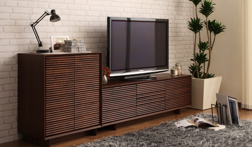 スリット(溝)がない扉です。収納物をすっきり隠したい場合に最適です。収納するAV機器のリモコンは通しませんが、TVリモコンとのリンク機能や赤外線リピーターを使うとリモコン操作できます。